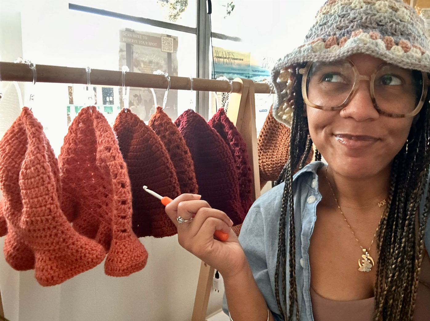 During stressful times in graduate school and other life experiences, Jennifer often found refuge, spiritual enlightenment, and a deeper connection to her true self by crocheting in cemeteries. Inspired by the tranquility and unexpected grief management this experience brought her, Jennifer launched Sista’s Crochet Creations to share the calming and restorative power of crafting with others.